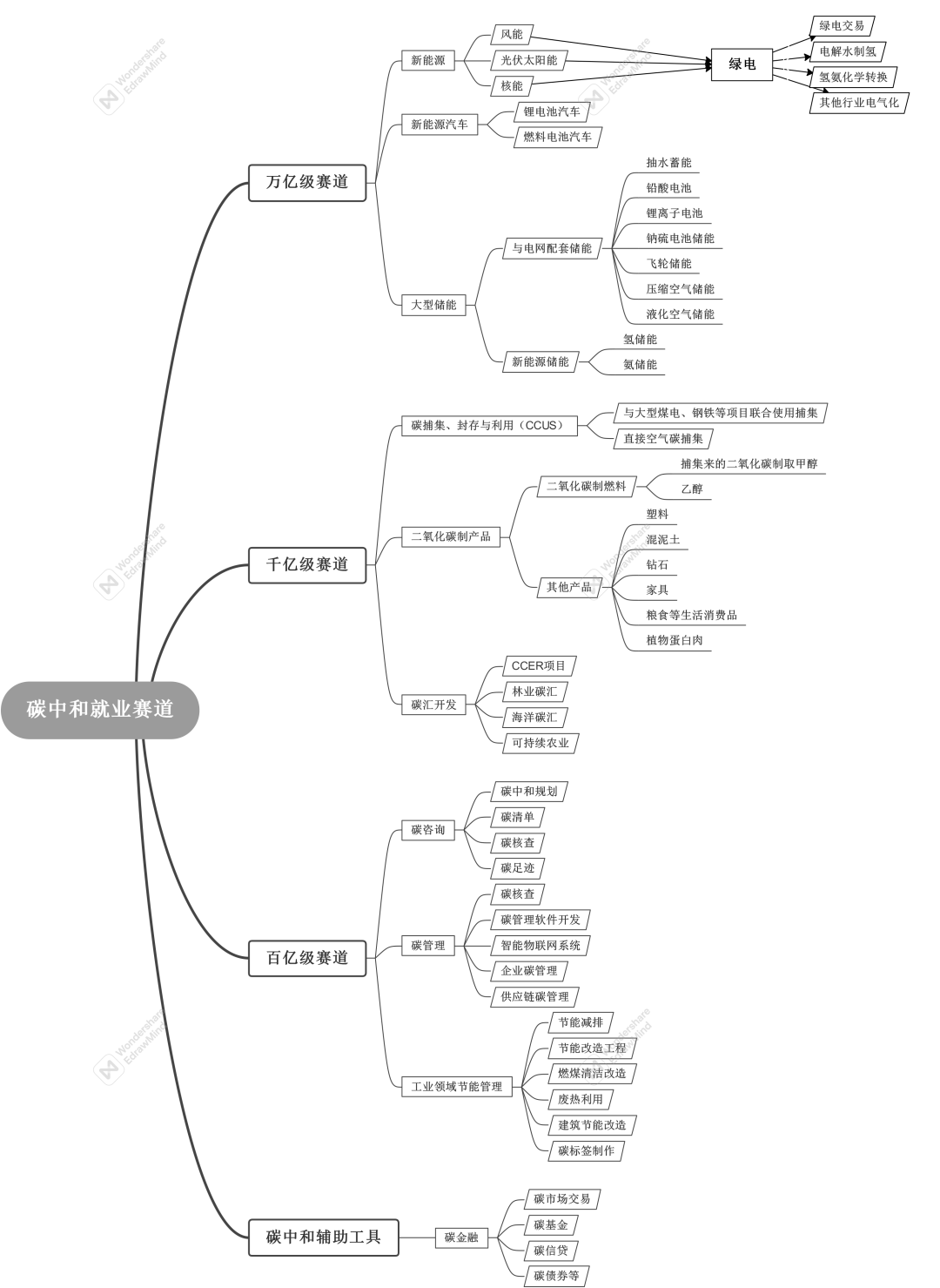 參考一些資料,我們先看一下這張碳中和就業賽道導圖,不一定完整,但可以看一個大概。