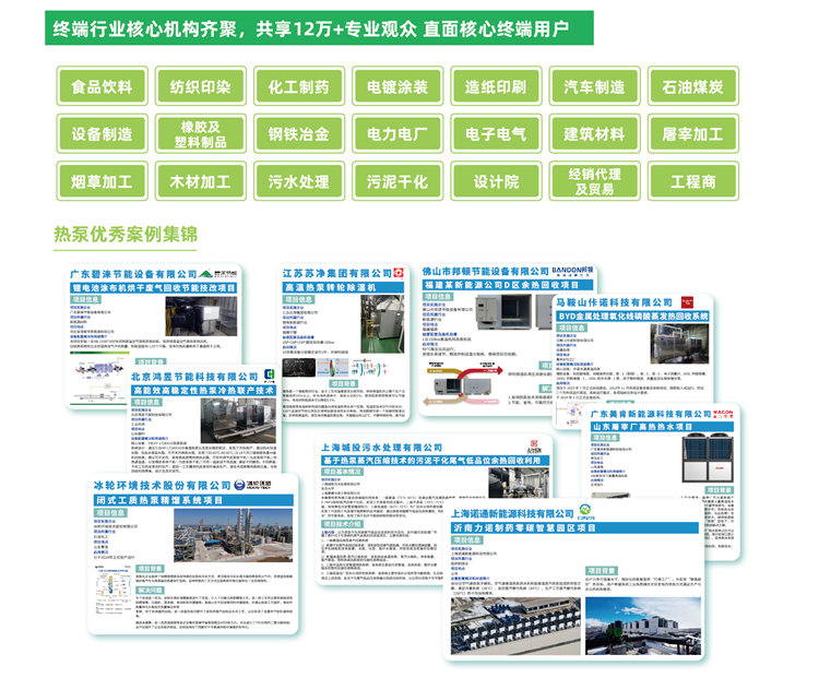 2026年上海綠色智造與節能技術展旗下的工業熱泵主題展將于2026年6月9-11日在上海|國家會展中心(虹橋)盛大啟幕工業熱泵主題展預計規模達10,000平米,將吸引終端領域專業觀眾20,000多名,展會將深度布局行業終端,打造工業熱泵示范項目,助力企業直面新能源、電鍍涂裝、石油化工、電力工廠、紡織印染、食品飲料、污泥干化等領域終端及環保領域用戶。